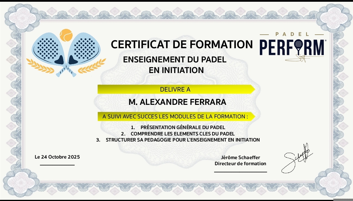 Félicitations à Alain SEMBA et Alexandre FERRARA qui ont brillamment réussi leur formation en enseignement du padel en initiation !