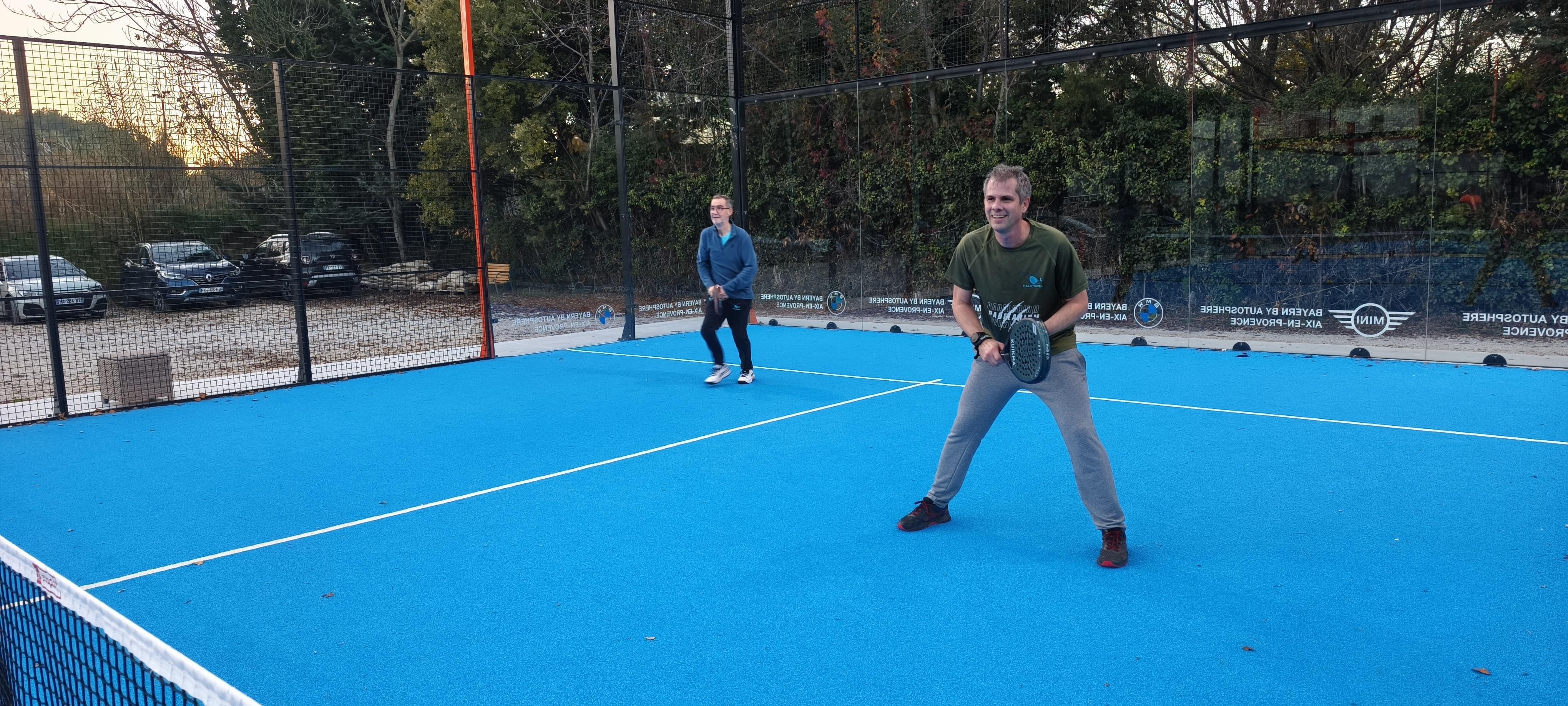 Une dizaine d’enfants ont pleinement profité de l’animation « cours de padel », encadrée par nos deux professeurs Alex et Alain, tout en se régalant de crêpes et de bonbons. Chacun d’entre eux a reçu un tee-shirt de la section, personnalisé avec son prénom au dos, et leur enthousiasme ainsi que leurs sourires ont largement contribué à la réussite de l’événement.